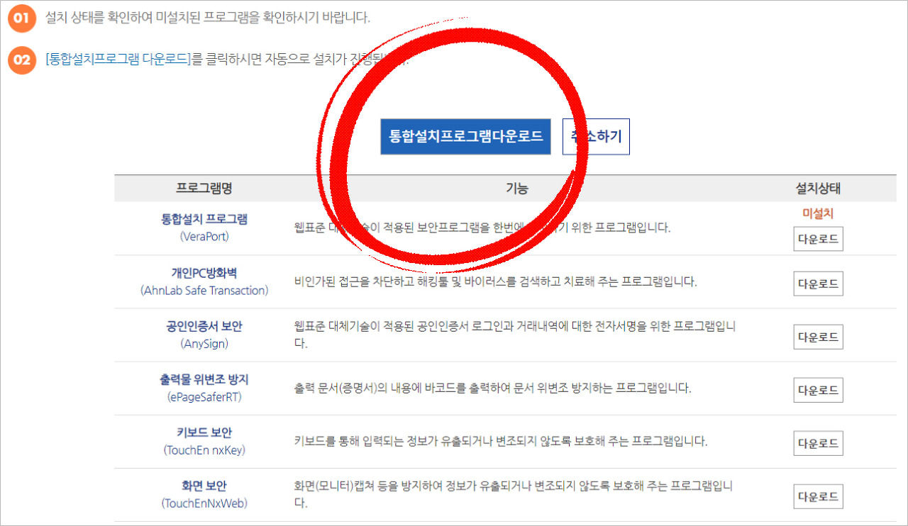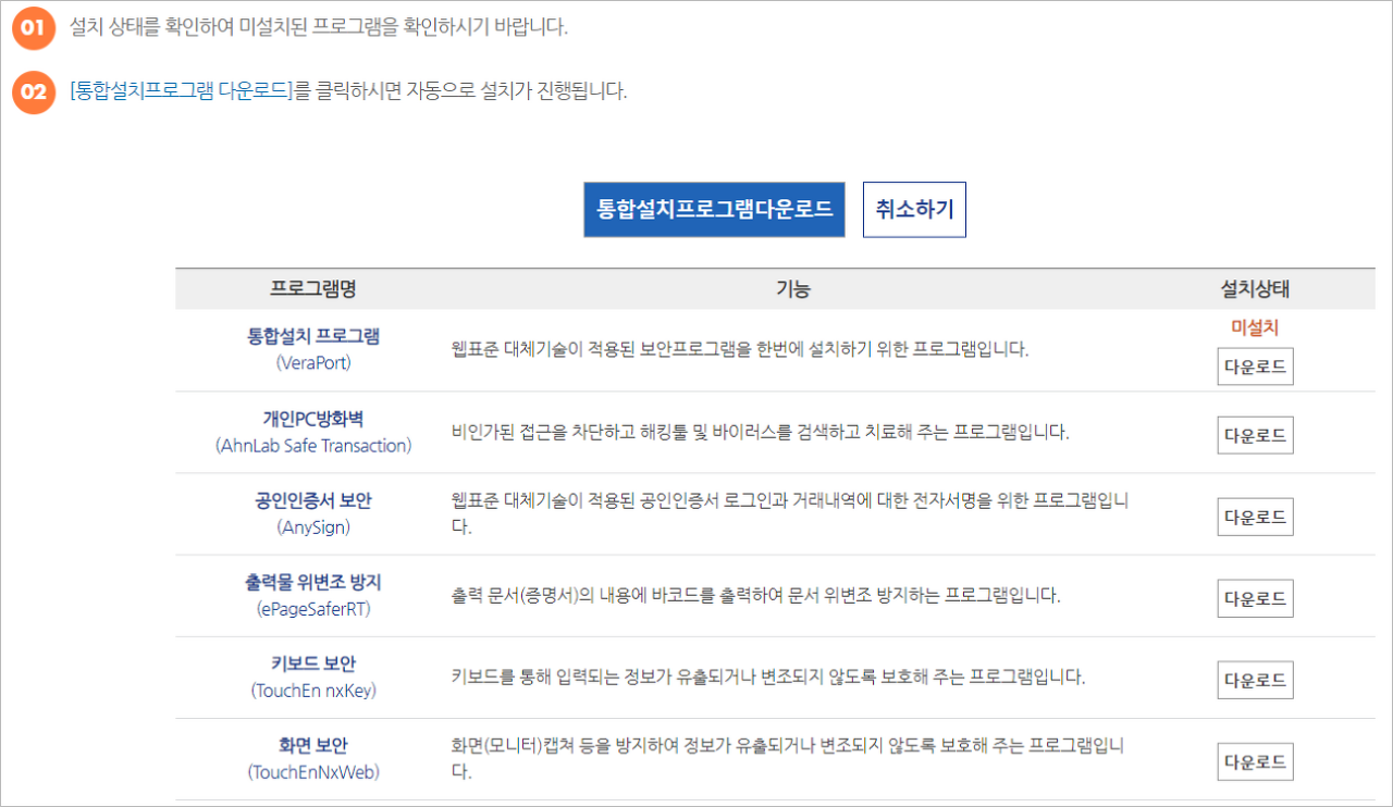 ⑤ 보통 금융권 공인인증서 로그인시 필요한 보안프로그램과 비슷하므로 30~1분 정도 소요된다고 보시면 됩니다.