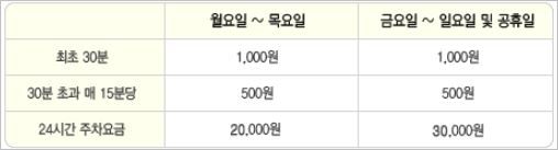 김포공항 주차대행비는 선불의 경우 주차시간에 상관없이 일일 15,000원의 비용이 책정되며, 만약 후불이라면 위 표를 참고하시면 됩니다. 8시간 이하 단기 주차라면 후불이 더 저렴하며, 이 보다 많은 시간이 소요된다면 선불이 좋습니다.
