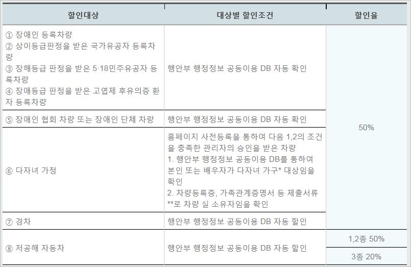 김포공항 주차할인 대상은 총 8가지에 해당될 때 가능합니다. 장애인등록차량, 국가유공자, 518민주유공자, 고엽제후유증환자, 장애인협회차량, 다자녀가정, 경차, 저공해 자동차가 이에 속합니다.
