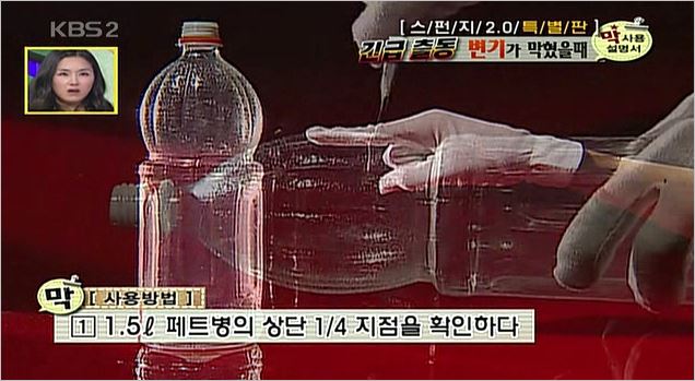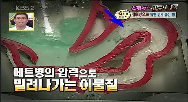 페트병을 이용해도 좋습니다. 집에 있는 1.5리터 페트병의 밑부분(1/4)을 칼로 잘라줍니다. 그 다음 물이 내려가는 부분에 펌프질을 반복적으로 해주면 됩니다.